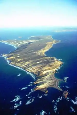 San Miguel Island, together with numerous small islets around it, is defined by the United States Census Bureau as Block 3010, Block Group 3, Census Tract 29.10 of Santa Barbara County, California. The island is uninhabited.[2][3] Highest peak is San Miguel Hill, at 831 feet (253 m). Submerged rocks make the nearly 28-mile (45 km) coastline a mariner's nightmare.
