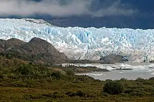 The San Quintín Glacier is the largest outflow glacier of the Northern Patagonian Ice Field in southern Chile. Its terminus is a piedmont lobe just short of the Gulf of Penas on the Pacific Ocean and just north of 47°S.