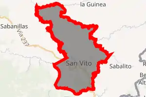 San Vito (Spanish pronunciation: [san vito]), originally named San Vito de Java, is a district and head city of the Coto Brus canton, in the Puntarenas province of Costa Rica.[1][2] It is located about 271 kilometres (168 mi) southeast of the capital San José, and close to the Panama border.