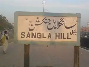 Sangla Hill Junction railway station (Urdu: سانگلہ ہل جنکشن ریلوے اسٹیشن, Punjabi: سانگلہ ہل جنکشن ریلوے اسٹیشن) is located in the Sangla Hill town, in Nankana Sahib Tehsil of Sheikhupura District, Punjab province, Pakistan. The station serves as a major junction between the Shahdara Bagh–Sangla Hill Branch Line, Khanewal–Wazirabad Branch Line and Sangla Hill–Kundian Branch Line.