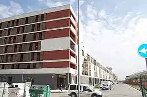 ![]() Elevated station opposite modern apartment buildings | |||||||||||