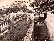 After an earthquake in 1853, the reliquary enclosing an image of Nuestra Señora del Carmen (Our Lady of Mount Carmel), originally situated at the Mount Carmel chapel, was moved to the Santa María de la Cabeza castle, where Santos Berrizbeitia built a new chapel in 1912 to protect the image; it was later moved to St. Agnes Church. The ditch was filled in for construction of the Mount Carmel chapel and the deteriorated parapets were demolished. The original slopes and terraces present on Diaz Fajardo's 1737 map were probably also buried in the process. The chapel in the castle was the final resting place for Berrizbeitia; his remains, originally interred at Holy Trinity Cemetery (which he had built), were exhumed and moved five years after his death.[6][12]