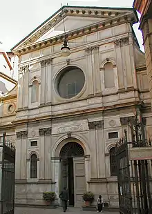 Santa Maria presso San Satiro (Saint Mary near Saint Satyrus) is a church in Milan. The Italian Renaissance structure (1476-1482) houses the early medieval shrine to Satyrus, brother of Saint Ambrose. The church is known for its false apse, an early example of trompe-l'œil, attributed to Donato Bramante.