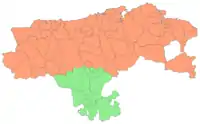 Furthermore, nine Sites of Community Importance (LIC[18]) have been declared: Western Mountain, Eastern Mountain, Western Rias and Oyambre Dunes, Dunes of Liencres and Estuary of the Pas, El Puntal Dunes and Estuary of the Miera, Ria de Ajo, Marshes of Noja-Santoña, Escudo de Cabuérniga Range and several caves with important bat colonies.