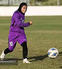 Sara Zohrabi Nia (Persian: سارا ظهرابی نیا;[2] born 13 November 1996), known as Sara Zohrabi (Persian: سارا ظهرابی), is an Iranian footballer who plays as a midfielder for Kowsar Women Football League club Heyat Football Alborz and the senior Iran women's national team.[4]