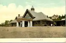 Saranac Lake Union Depot is a former New York Central Railroad station in Saranac Lake, New York. It was built in 1904 by the Delaware and Hudson Railway.[1] In its heyday, the station served several daily trains going north to Malone, New York, on to Montreal, Quebec, and south to Utica, New York and Grand Central Terminal in New York City. Passenger coaches went direct from New York City to Saranac Lake until late 1952 or early 1953.[4] Direct sleeping cars from trains such as North Star and then Iroquois continued as late as 1964 to the station.[5] Tourist trains were operated on the 8-mile sector between Saranac Lake and Lake Placid by the Adirondack Railroad between 2000 and 2016. The tracks were removed in 2022 to enable construction of a rail-trail between Lake Placid and Tupper Lake, to be completed in 2024.[6][7]