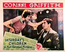 Saturday's Children is a 1929 American part-talkie romantic-comedy film directed by Gregory La Cava, and starring Corinne Griffith, Grant Withers, Albert Conti, Alma Tell, Lucien Littlefield. It is based on the 1927 play Saturday's Children by Maxwell Anderson. The film was released by Warner Bros. on March 10, 1929 in silent version and April 14, 1929 in sound version.[1][2][3]