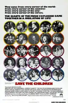 Save the Children is a 1973 American documentary film directed by Stan Lathan and written by Matt Robinson. The concert documentary film chronicles performers that appeared during Jesse Jackson's Operation PUSH exposition held in 1972 in Chicago. The film was released on September 18, 1973, by Paramount Pictures.[1][2] A soundtrack to the film was released by Motown Records.