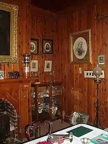 - The rifle heritage of William Sloane (grandfather of 2012 occupant) consisting of awards, medals, insignia, rifles, trophies, letters and diaries. William competed at the international Bisley competition in 1897 1898, then was part of the Australian team in 1902. He also represented his country in New Zealand competitions. The team was victorious in 1897 and 1902. He was instrumental in modernizing the Victorian Defences with the appropriate rifle. His part in riflemen history has been documented in "The Bisley Boys" by Andrew Kilsby, 2008.[8] These objects are on display in the 1886 timber panelled homestead dining room.[4][1]