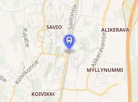 Savio railway station (Finnish: Savion rautatieasema, Swedish: Savio järnvägsstation) is located in the district of Savio in the city of Kerava, Finland. It is located between the stations of Korso and Kerava, and serves the K line between Helsinki and Kerava, as well as the T line from Helsinki to Riihimäki (at night only).