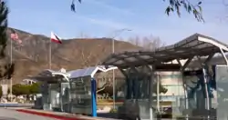 The CSUSB station is popular with students and staff who commute to the university because of the high cost and low availability of parking around campus. In 2008, the Omnitrans Transit Development Board began developing plans for a bus rapid line connecting CSUSB and Loma Linda University.[11] Construction of the line began with construction of the Palm station and-neo the CSUSB Transit Center.[12] The station was designed by Gruen Associates of Los Angeles for Omnitrans and the local community. Main artwork is by Freya Bardell and Brian Howe. The station art will be based on the trees on campus; the trees on glass will have a rich blue color that dramatically contrasts surroundings. Some artwork on the station was designed with help by CSUSB students and faculty that reflects the university community at large.[13]