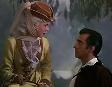 Granger, who performed most of his stunts himself, took fencing lessons with Jean Heremans when preparing for the role.[3] The 8-minute-long duel in the theater between Granger and Ferrer took eight weeks of preparation, including memorizing eighty-seven fencing passes.[3] Filming this scene left Granger with a wrenched knee, a damaged shoulder, and an injured back.[3] Other accidents on set included Jean Simmons – who was visiting her husband Granger – almost receiving a sword in her face, and a chandelier hitting a mattress upon which Granger was supposed to lie and embedding itself in the stage.[13][14] Fortunately for Granger, he insisted on seeing the chandelier dropped once before shooting the scene.[3]