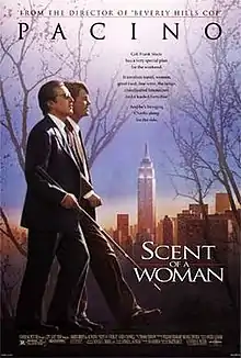 Scent of a Woman is a 1992 American drama film produced and directed by Martin Brest that tells the story of a preparatory school student who takes a job as an assistant to an irritable, blind, medically retired Army lieutenant colonel. The film is a remake of Dino Risi's 1974 Italian film Profumo di donna, adapted by Bo Goldman from the novel Il buio e il miele (Italian: Darkness and Honey) by Giovanni Arpino. The film stars Al Pacino and Chris O'Donnell, with James Rebhorn, Philip S. Hoffman and Gabrielle Anwar in supporting roles.