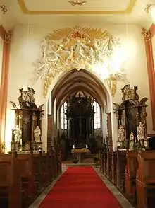 Schönau Abbey had grown strong enough economically by 1340 that the city of Frankfurt am Main could promise support through arms and wagons. A Gothic chancel (still extant today) and a chapel dedicated to St. Elizabeth were added between 1420 and 1430 on the north side of the nave.