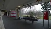 It was constructed by B. Grimmek in 1958. Due to the extension of the U6, the trains had to go above ground after Kurt-Schumacher-Platz station. Soil for the embankment on which the line is built came from excavations for the U9, which was being built in parallel.