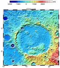 ![]() Elevation map of the Martian crater Schiaparelli, as seen by Mars Global Surveyor | |