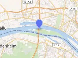 The Schierstein Bridge (German: Schiersteiner Brücke) is 1,282-meter (4,206 ft) long, four-lane highway bridge in Germany. It carries Bundesautobahn 643 over the Rhine River between Mainz-Mombach, Rhineland-Palatinate and Wiesbaden-Schierstein, Hesse (Rhine kilometrage 504.45). Crossing two arms of the Rhine and the intervening island of Rettbergsaue, the bridge is made of six individual structures, including 100 m (330 ft) from prestressed concrete. It was built between 1959 and 1962.