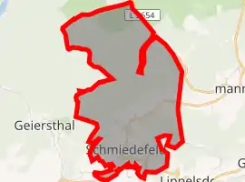 Schmiedefeld is a village and (with the municipal section Taubenbach) a former municipality in the district Saalfeld-Rudolstadt, in Thuringia, Germany close to the Thuringian Rennsteig. Since 1 January 2019, it is part of the town Saalfeld. Before, it belonged to the municipal association Lichtetal am Rennsteig, which consisted of the municipalities Lichte, Piesau, Reichmannsdorf, and Schmiedefeld.