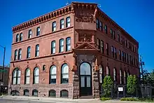 In the 1850s, Prussian immigrant Peter Schoenhofen began working in the brewing trade in Chicago. In 1861, he formed a partnership with Matheus Gottfried to establish a brewery at the intersection of Jefferson and 12th Streets.[4] They produced approximately 600 barrels of beer per year until 1867 when Schoenhofen bought out Gottfried, moved production to a newer facility constructed at the intersection of 18th Street and Canalport Avenue, and renamed the company after himself.[2] The next year, output had increased to over 10,000 barrels.[2] Over the following decades, the facility was expanded continuously, culminating in the 1902 construction of the powerhouse building, which was designed by Hugh Garden and made use of a natural spring for brewing water.[5] By 1910, the brewery was producing over a million barrels per year.[4] Edelweiss beer was their most popular brand, and accounted largely for their strong growth.