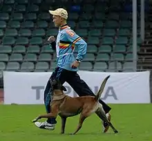 Schutzhund (/'ʃʊtshʊnt/, German for "protection dog"[lower-alpha 3]), currently known competitively as IGP[lower-alpha 2] and previously as IPO,[lower-alpha 1] is a dog sport that tests a dog's tracking, obedience, and protection skills, and evaluates if a dog has the appropriate traits and characteristics of a good working dog.[1] It was developed in Germany in the early 1900s as a suitability test for German Shepherds, but soon became the model for training and evaluating all five of the German protection breeds, which included Boxer, Dobermann, Riesenschnauzer, and Rottweiler. Though any breed of dog can participate, today the sport is dominated by German Shepherds and the Belgian Malinois breed. Dog owners and handlers participate in Schutzhund clubs as a group activity for training the dogs, and clubs sponsor trials to test the dogs and award titles. The best dogs can qualify to participate in national and international level championships.