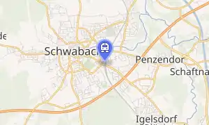 Schwabach station is a railway station in the municipality of Schwabach, located in Middle Franconia, Germany. The station is on the Nuremberg–Augsburg and Nuremberg–Roth lines of Deutsche Bahn.[1]