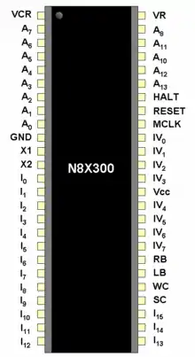 The 8X300 is a microprocessor produced and marketed by Signetics starting 1976 as a second source for the SMS 300 by Scientific Micro Systems, Inc.[1][2][3][4] Although SMS developed the SMS 300, Signetics was the sole manufacturer of this product line. In 1978 Signetics purchased the rights to the SMS 300 series and renamed it 8X300.