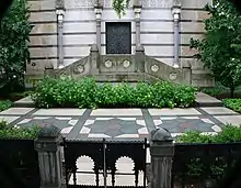 The society's "building" was designed in the Moorish Revival style by Richard Morris Hunt and constructed in 1870.[11] A later expansion was completed in 1901. Architectural historian Patrick Pinnell includes an in-depth discussion of Keys' building in his 1999 history of Yale's campus, relating the then-notable cost overruns associated with the Keys structure and its aesthetic significance within the campus landscape. Pinnell's history shares the fact that the land was purchased from another Yale secret society, Berzelius (at that time, a Sheffield Scientific School society). In 2002, the society underwent a major construction project rumored to involve an aquarium beneath the society.