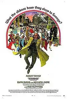 Scrooge is a 1970 musical film adaptation of Charles Dickens' 1843 story A Christmas Carol. It was filmed in London between January and May 1970 and directed by Ronald Neame, and starred Albert Finney as Ebenezer Scrooge. The film's score was composed by Leslie Bricusse and arranged and conducted by Ian Fraser. With eleven musical arrangements interspersed throughout, the award-winning motion picture is a faithful musical retelling of the original.