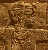 The monumental sculpture of ancient Egypt is world-famous, but refined and delicate small works exist in much greater numbers. The Egyptians used the distinctive technique of sunk relief, which is well suited to very bright sunlight. The main figures in reliefs adhere to the same figure convention as in painting, with parted legs (where not seated) and head shown from the side, but the torso from the front, and a standard set of proportions making up the figure, using 18 "fists" to go from the ground to the hair-line on the forehead.[36] This appears as early as the Narmer Palette from Dynasty I. However, there as elsewhere the convention is not used for minor figures shown engaged in some activity, such as the captives and corpses.[37] Other conventions make statues of males darker than females ones. Very conventionalized portrait statues appear from as early as Dynasty II, before 2,780 BCE,[38] and with the exception of the art of the Amarna period of Ahkenaten,[39] and some other periods such as Dynasty XII, the idealized features of rulers, like other Egyptian artistic conventions, changed little until after the Greek conquest.[40]