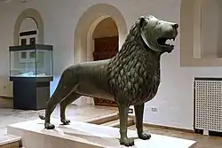 The conquest of the whole of Mesopotamia and much surrounding territory by the Assyrians created a larger and wealthier state than the region had known before, and very grandiose art in palaces and public places, no doubt partly intended to match the splendour of the art of the neighbouring Egyptian empire. Unlike earlier states, the Assyrians could use easily carved stone from northern Iraq, and did so in great quantity. The Assyrians developed a style of extremely large schemes of very finely detailed narrative low reliefs in stone for palaces, with scenes of war or hunting; the British Museum has an outstanding collection, including the Lion Hunt of Ashurbanipal and the Lachish reliefs showing a campaign. They produced very little sculpture in the round, except for colossal guardian figures of the human-headed lamassu, which are sculpted in high relief on two sides of a rectangular block, with the heads effectively in the round (and also five legs, so that both views seem complete). Even before dominating the region they had continued the cylinder seal tradition with designs which are often exceptionally energetic and refined.[35]