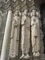 Osiris on a lapis lazuli pillar in the middle, flanked by Horus on the left, and Isis on the right, 22nd dynasty, Louvre