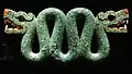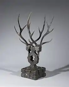 Glass may be used for sculpture through a wide range of working techniques, though the use of it for large works is a recent development. It can be carved, though with considerable difficulty; the Roman Lycurgus Cup is all but unique.[11] There are various ways of moulding glass: hot casting can be done by ladling molten glass into moulds that have been created by pressing shapes into sand, carved graphite or detailed plaster/silica moulds. Kiln casting glass involves heating chunks of glass in a kiln until they are liquid and flow into a waiting mould below it in the kiln. Hot glass can also be blown and/or hot sculpted with hand tools either as a solid mass or as part of a blown object. More recent techniques involve chiseling and bonding plate glass with polymer silicates and UV light.[12]