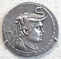 A native Italian style can be seen in the tomb monuments, which very often featured portrait busts, of prosperous middle-class Romans, and portraiture is arguably the main strength of Roman sculpture. There are no survivals from the tradition of masks of ancestors that were worn in processions at the funerals of the great families and otherwise displayed in the home, but many of the busts that survive must represent ancestral figures, perhaps from the large family tombs like the Tomb of the Scipios or the later mausolea outside the city. The famous bronze head supposedly of Lucius Junius Brutus is very variously dated, but taken as a very rare survival of Italic style under the Republic, in the preferred medium of bronze.[58] Similarly stern and forceful heads are seen on coins of the Late Republic, and in the Imperial period coins as well as busts sent around the Empire to be placed in the basilicas of provincial cities were the main visual form of imperial propaganda; even Londinium had a near-colossal statue of Nero, though far smaller than the 30-metre-high Colossus of Nero in Rome, now lost.[59]