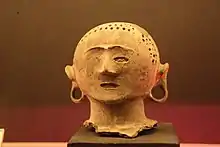 Portrait sculpture began in Egypt, where the Narmer Palette shows a ruler of the 32nd century BCE, and Mesopotamia, where we have 27 surviving statues of Gudea, who ruled Lagash c. 2144–2124 BCE. In ancient Greece and Rome, the erection of a portrait statue in a public place was almost the highest mark of honour, and the ambition of the elite, who might also be depicted on a coin.[5] In other cultures such as Egypt and the Near East public statues were almost exclusively the preserve of the ruler, with other wealthy people only being portrayed in their tombs. Rulers are typically the only people given portraits in Pre-Columbian cultures, beginning with the Olmec colossal heads of about 3,000 years ago. East Asian portrait sculpture was entirely religious, with leading clergy being commemorated with statues, especially the founders of monasteries, but not rulers, or ancestors. The Mediterranean tradition revived, initially only for tomb effigies and coins, in the Middle Ages, but expanded greatly in the Renaissance, which invented new forms such as the personal portrait medal.