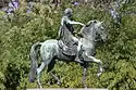 Appearing at the base of the grotto are four tritons—creatures who are half-man and half-fish—who are part of the sea-god's entourage. Each holds a conch shell trumpet with which they can inspire fear. They are restraining the sea-horses who draw Neptune's chariot across the seas.[40] This image of Neptune commanding the watery dominion was a common symbol in sixteenth, seventeenth, and eighteenth-century art, to represent monarchs controlling the fate of their people.[40] In the nineteenth century, a bank of evergreen trees was planted behind the white figural group to provide a dark contrast.[40]