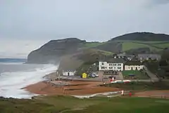 Seatown comprises a small number of houses, a holiday park, some holiday cottages and "The Anchor" pub. The small River Winniford or Wynreford[1] runs into the sea here. Seatown beach is popular with fossil collectors, with rock of Late Jurassic/Early Cretaceous. The beach is privately owned; it is free to access but parking is charged.