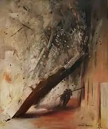 Artist Leonard Rosoman was serving with the Auxiliary Fire Service on the night of the raid. While fighting a fire in Shoe Lane, Rosoman was relieved of his hose. Moments later a wall collapsed, burying the two firefighters working where Rosoman had just been. The moment haunted Rosoman for the rest of his life. He immortalised the scene in his painting A House Collapsing on Two Firemen, Shoe Lane, London, EC4. William Sansom, a friend of Rosoman's who would go on to become a novelist and travel writer, survived the incident. The fireman who relieved Rosoman of his hose was killed.[6]