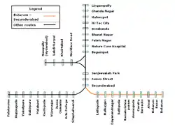 Secunderabad–Bolarum route is scheduled to take off as a part of the phase 2 of the Hyderabad Multi-Modal Transport System in December 2018., however was delayed due to paucity of funds.[3][4] The work of the section is nearing to completion in February 2020.[5]