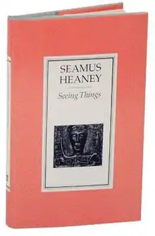 Seeing Things is the ninth poetry collection by Seamus Heaney, who received the 1995 Nobel Prize in Literature. It was published in 1991. Heaney draws inspiration from the visions of afterlife in Virgil and Dante Alighieri in order to come to terms with the death of his father, Patrick, in 1986. The title, Seeing Things, refers both to the solid, fluctuating world of objects and to a haunted, hallucinatory realm of the imagination.[1] Heaney has been recorded reading this collection on the Seamus Heaney Collected Poems album.