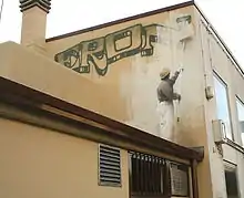 Self-referencial graffiti. The painter drawn on a wall erases his own graffiti, and may be erased himself by the next facade cleaner.