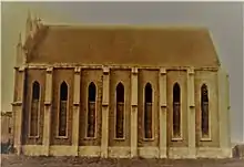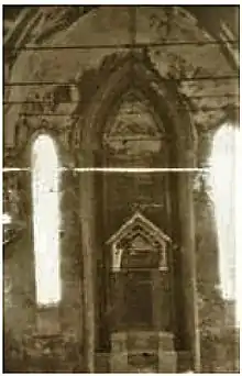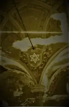 The Sephardic Temple was built between 1905 and 1908 in a Catalan Gothic architectural style following the blueprints of Austrian architect Adolf Lintz and decorated by painter Moritz Finkelstein.[2] The Temple was built in the place of an older synagogue dating from 1866, on a piece of land on Mircea Street, a donation from Ismail Kemal Bey.[4] The sephardic synagogue was heavily damaged during the Second World War when it was used as an ammunition warehouse, later further damaged by an earthquake, and was demolished in 1989 under the rule of Nicolae Ceaușescu.[2][5]