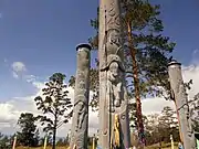 - Totem pole, manmade wooden landmark or cairn in the Northwest coast