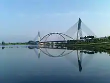 | Design | symmetric cable-stayed through-arch bridge |