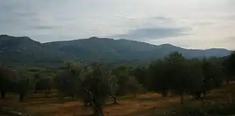 Its highest summit is Tossal d'en Canes (715 m),[2] being slightly higher than neighboring Talaies d'Alcalà's highest summit. Another important peak is 520 m high El Cavall.