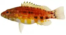 Serranus is a genus of fish in the family Serranidae.[3] It is one of five genera known commonly as the "Atlantic dwarf sea basses".[4] These fish are hermaphrodites, each individual possessing functional male and female reproductive tissues. When a pair spawns, one fish acts as a male and the other acts as a female.[5]