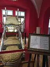 The British King Edward VII, who was heavily overweight, used a specially constructed "love seat" (siege d'amour ) when he visited the famous brothel, Le Chabanais in Paris. The piece still exists and a replica[3] is exhibited at the Musée de l'Erotisme in Pigalle.[4]
