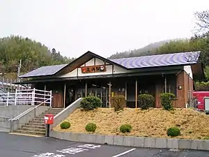 The station consists of two side platforms serving two tracks at grade with a siding. The station building is a modern structure built in 2004 in Japanese style. It houses a waiting area and there is a ticket window staffed by a kan'i itaku agent which sells some types of tickets. A ramp leads up to the station building from the forecourt but access to the opposite side platform is by means of a footbridge.[2][3][4]