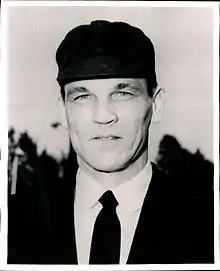 Crawford was the third base umpire for Sandy Koufax's third no-hitter on June 4, 1964. He was the home plate umpire when one of the most violent brawls in baseball history occurred during a game between the Los Angeles Dodgers and the San Francisco Giants at Candlestick Park on August 22, 1965.[7][8] The incident occurred between Giants pitcher Juan Marichal and Dodgers catcher John Roseboro in the aftermath of the Watts riots near Roseboro's Los Angeles home and while the Dominican Civil War raged in Marichal's home country so emotions were raw.[9] The Dodgers' Maury Wills led off the game with a bunt single off Giants pitcher Marichal and eventually scored a run.[10] Marichal, a fierce competitor, viewed the bunt as a cheap way to get on base and took umbrage with Wills.[8][9] When Wills came up to bat in the second inning, Marichal threw a pitch directly at Wills sending him sprawling to the ground.[8] Willie Mays then led off the bottom of the second inning for the Giants and Dodgers' pitcher Sandy Koufax threw a pitch over Mays' head as a token form of retaliation.[8][9] In the top of the third inning with two outs, Marichal threw a fastball that came close to hitting Ron Fairly, prompting him to dive to the ground.[9] Marichal's act angered the Dodgers sitting in the dugout and, Crawford then warned both teams that any further retaliations would not be tolerated.[9] When Marichal came to bat in the third inning, he was expecting Koufax to take further retaliation against him but instead, he was startled when Roseboro's return throw to Koufax after the second pitch either brushed his ear or came close enough for him to feel the breeze off the ball.[11] When Marichal confronted Roseboro about the closeness of his throw, Roseboro came out of his crouch with his fists clenched.[11] Marichal stated afterwards that he thought Roseboro was about to attack him and raised his bat, striking Roseboro at least twice over the head with his bat, opening a two-inch gash that sent blood flowing down the catcher's face that required 14 stitches.[11] Koufax ran in from the mound to attempt to separate them and was joined by the umpires, players and coaches from both teams.[11] Crawford attempted to step between the two players in an effort to defuse the situation.[9] When Marichal stumbled, Crawford saw his opportunity and wrapped both of his arms around Marichal and the two men fell to the ground.[9] A 14-minute brawl ensued on the field before Koufax, Giants captain Willie Mays and other peacemakers restored order.[8] Crawford ejected Marichal from the game and afterwards, National League president Warren Giles suspended Marichal for eight games (two starts), fined him a then-NL record US$1,750[7][12] (equivalent to $15,048 in 2021),[13] and also forbade him from traveling to Dodger Stadium for the final, crucial two-game series of the season.[11] Roseboro filed a $110,000 damage suit against Marichal one week after the incident but, eventually settled out of court for $7,500.[11]