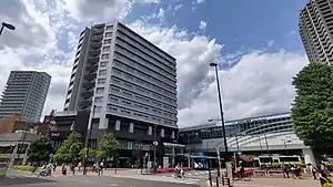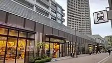 An extensive commercial and housing area called "Eminade Shakujii-kōen" is expected to be completed by fiscal year 2015. Opening in three stages, the first stage of this project was opened on October 2, 2013, as "Emio Shakujii-kōen" at a cost of ¥900 million. Located largely towards the west exit and in close proximity to the station complex, it saw the opening of nineteen stores including a café, a general store, and the supermarket Ito Yokado.[14][15] The second stage of the project, "Emio Shakujii-kōen East" is expected to be completed on August 21, 2014. This stage will see the opening of six stores comprising two fashion establishments (Muji and Buona Vita), an opticians and three catering establishments. Sections of the second stage comprising a daycare center, a pharmacist and a pet-care center were opened prior to the main section over the course of 2014.[16]