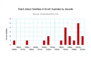 Five fatal shark attacks have occurred in South Australian waters since the year 2001. All attacks prior to 2014 have been attributed to Great white sharks.[1]